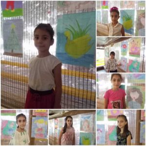بعد دورة رسم خلال فترة الصيف و كانت مشاركة الأطفال متنوعة من رسوم للمناظر الطبيعية و رسوم وجوه و شخصيات كرتونية و غيرها باستخدام عدة خامات لونية من ألوان خشبية و مائية و أقلام الرصاص و الفحم .