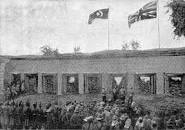 الجيش المصري يرفع الرايتين المصرية والبريطانية فوق قصر حاكم السودان.