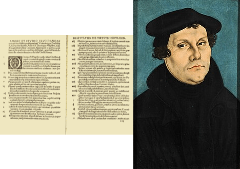 مارتن لوثر يعلق وثيقة مكونة من 95 أطروحة على باب كنيسة القلعة في فيتنبرغ وذلك أثناء الفترة التي عرفت باسم الإصلاح البروتستانتي.