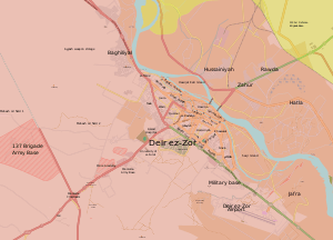 وفي الفترة ما بين أبريل ومايو 2016، نشب قتال كر وفر حيث حاول داعش التقدم ضد القوات الحكومية في حي الصناعة في مدينة دير الزور. وتمكن الجيش في نهاية المطاف من الاحتفاظ بمواقعه.