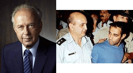 اغتيال رئيس الوزراء الإسرائيلي إسحاق رابين على يد اليهودي المتطرف إيجال عامير.إسحاق رابين (بالعبرية: יצחק רבין) (بالعبرية: יִצְחָק רַבִּין – يلفظ: يتسحاك رابين)، (1 مارس 1922 – 4 نوفمبر 1995) سياسي إسرائيلي وجنرال عسكري سابق في الجيش الإسرائيلي ورئيس وزراء إسرائيل، يُعد من أبرز الشخصيات الإسرائيلية وأحد أهم متخذي القرارات في الشؤون الخارجية، العسكرية والأمنية في إسرائيل.