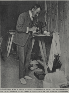خلال الفترة التي قضاها في مصر، اكتسب لوكاس خبرة في تحليل وحفظ الآثار المستخرجة من المواقع. وعندما اكتشف هوارد كارتر مقبرة توت عنخ آمون في نوفمبر 1922 وكانت محتوياتها سليمة لحد كبير، وافقت السلطات المصرية على إعارة لوكاس للمساهمة في أعمال التنقيب. بدأ عمله في ديسمبر 1922، وكان ضمن فريق صغير من علماء الآثار والخبراء المخضرمين بقيادة كارتر ومن ضمنهم آرثر ميس “Arthur Mace” وآرثر كالندر “Arthur Callender” والمصور هاري بيرتون. لعب لوكاس دورًا رئيسيًا في هذا الفريق، حيث كان مسؤولاً عن حفظ وترميم وتجهيز شحن آلاف القطع المستخرجة، وبعضها في حالة هشة للغاية. لتسهيل مهمته، أُنشِئ معمل مؤقت في مقبرة سيتي الثاني المجاورة، وساعده آرثر ميس في تقييم وتنظيف – وإذا لزم الأمر – إصلاح القطع لضمان نقلها بأمان إلى متحف القاهرة.