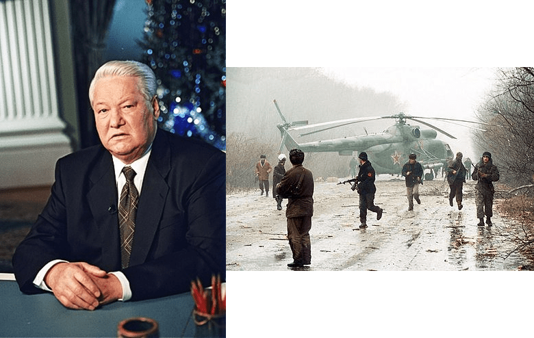 رئيس روسيا بوريس يلتسن يصدر أوامره للقوات الروسية بالتوجه نحو الشيشان فيما عرف بالحرب الشيشانية الأولى.