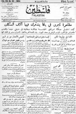 تأسيس جريدة فلسطين في يافا لصاحبيها ومحرريها عيسى داود العيسى ويوسف العيسى، وهي جريدة سياسية إخبارية تصدر مرتين في الأسبوع.