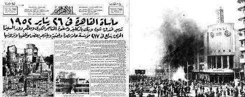اندلاع حريق كبير في القاهرة التهمت خلاله النار نحو 700 محل وسينما وكازينو وفندق ومكتب ونادي في شوارع وميادين وسط المدينة.