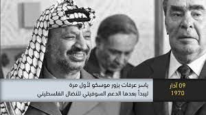 شهد يوم 9 مارس عام 1970 أول زيارة لرئيس حركة فتح الراحل “ياسر عرفات” إلى روسيا لأول مرة، وجاءت الزيارة بعد سنوات قليلة من إنشاء حركة فتح بمبادئ بدا وقتها أنها يسارية؛ وهو ما دفع الاتحاد السوفيتى إلى دعم المنظمة ماليا أو عسكريا من أجل خوض بعض المعارك في ذلك الوقت.