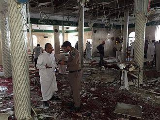قامت الدولة الإسلامية (داعش) بتبني التفجير، حيث صدر بيان عن ولاية نجد التابعة للتنظيم قائلًا أن منفذ الهجوم يُدعى “أبو عامر النجدي”، وصرّحت أن أسباب هذه العملية هي أسباب طائفية حيث أن المصلِّين في هذا المسجد من “الرافضة” الذين يصفهم التنظيم بالردَّة. تُصنِّف المملكة العربية السعودية تنظيم داعش كمنظمة إرهابية.