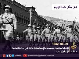 تمر اليوم الذكرى الـ 142 على بداية الاحتلال الإنجليزى، لمدن بورسعيد والإسماعيلية، وذلك في 20 أغسطس عام 1882، وكان قد بدأ الاحتلال الإنجليزى، مع قيام الأسطول الإنجليزى بقصف مدينة الإسكندرية فى 11 يوليو من عام 1882، وأعلن الزعيم أحمد عرابى التعبئة العامة، والتجنيد لمحاربة الجيش البريطانى، ودخل الجيش المصرى فى معارك القصاصين وكفر الدوار مع الجيش البريطانى.