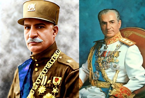 حكم ابنه محمد رضا بهلوي (1919-1979 م) تحت الوصاية البريطانية والروسية حتى سنة 1946 م. قام بالتقرب من الولايات المتحدة في سياسته الخارجية ومن الغرب بشكل عام.