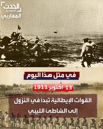 تمر الذكرى 13 بعد المائة على بدء نزول قوات الإحتلال الإيطالي إلى الأراضي الليبية في 11 أكتوبر 1911، وذلك في أول عملية إنزال بحري لقواتها، بعد أيام قليلة من إعلان الحرب على الحكم العثماني للبلاد وقصف المدن على طول الساحل الممتد من شرق ليبيا إلى غربها.
