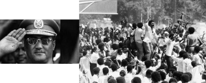 كان غاندي يقيم حملات، للمقاومة السلمية في الهند حيث تبعه بعض الهنود في هذه الحملات، بسبب إيمانهم الشديد به، وبمعتقداته التي تدعو إلى نبذ العنف واجتنابه بالإضافة إلى أن بعض العمال الذين يسكنون في الجنوب، ومنهم صينيون وإندونيسيون وهنود، ووثنيون وزنوج لم يكونوا مؤمنين بمبادئ زعمائهم، كانوا جميعهم يتبعون غاندي، وذلك لأنهم يعلمون مقدار إخلاصه وموثوقيته، ومما يجدر ذكره أن غاندي كان يترك الأعمال التي تؤول إلى الربح المادي كلها حيث وهب ماله في سبيل إعانة المحتاجين والمظلومين فكان يسكن معهم، ويأكل من طعامهم كما أنه تخلى عن مظاهر الحضارة كلها فتبعه الجميع دون أدنى شك منهم.