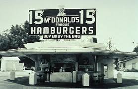 افتتح أول مطعم ماكدونالدز عام 1955 على يد ديك وماك ماكدونالد. في 15 أبريل 1955، أطلق راي كروك أول مطعم ماكدونالدز في ديس بلينز، إلينوي ، كانت قائمة الطعام فيه مكونة من عشرة أنواع من الهمبرغر بقيمة 15 سنتًا.