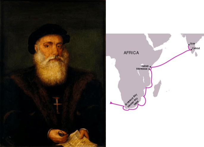البحار البرتغالي فاسكو دا غاما يصل إلى الهند مكتشفًا بذلك طريقًا بحريًا يمكن من التبادل المباشر بين أوروبا وآسيا.