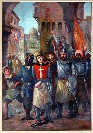 المصريون يعتقلون ملك فرنسا لويس التاسع في معركة فارسكور خلال الحملة الصليبية السابعة.