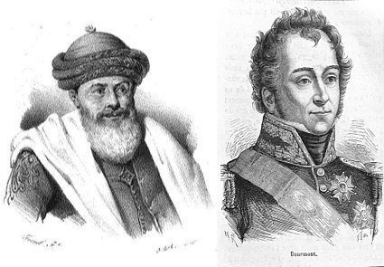 » – توقيع المعاهدة في المعسكر المخيم في الأبيار قرب مدينة الجزائر يوم 5 جويلية 1830م، إمضاء: الكونت دي بورمن، خاتم حسين باشا داي الجزائر