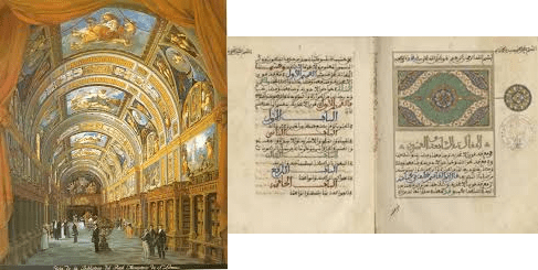 «وكانت الكتب في غاية الحفظ، ومكتوب على باب الخزانة بخط أعجمي ما نصه:” أمر البابا أن لا يخرج من هذه الخزانة شيئا ، و من اعتناء الطاغية بنا فتحوا لنا الخزانة بأمره ، فأرونا كتب المسلمين ، و عدتهم ألف و ثمانمائة سفر فيها نسختان من المصحف الكريم ، و عدة تفاسير جلهم حواشي و كثير من كتب الطب ، و قد طالعت ما سمح به الوقت مع ضيقه ، فخرجت من الخزانة بعد أ، أوقدت نار الأحزان بفؤادي نارها ، و ناديت بالثارات فلم يأخذ أحد ثأرها ، يا ليتني لم أٍرها ، و الحاصل أ، هذا الأسكوريال من إحدى عجائب الدنيا “»