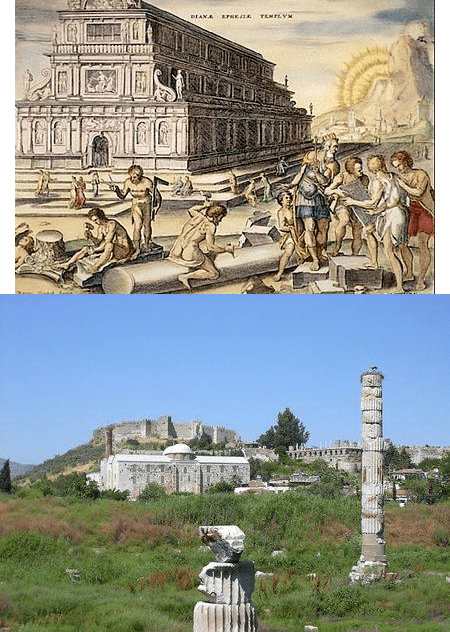 معبد أرتميس في إفسوس، أحد عجائب الدنيا السبع، يدمره حريق أشعله هروستراتوس.