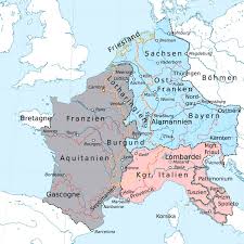 معاهدة ميرسن: قام الملك لويس الألماني وأخيه غير الشقيق تشارلز الأصلع بتقسيم مملكة الفرنجة الوسطى إلى قسمين أكبر شرقًا وغربًا.