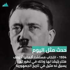 – انتخاب مستشار ألمانيا أدولف هتلر رئيسًا لها وذلك في تطور لم يسبق له مثيل في تاريخ الجمهورية. أدولف هتلر (بالألمانية: Adolf Hitler) (20 أبريل 1889 – 30 أبريل 1945) زعيم ألمانيا النازية، ولد في الإمبراطورية النمساوية المجرية، وكان زعيم ومؤسس حزب العمال الألماني الاشتراكي الوطني والمعروف باسم الحزب النازي. حكم ألمانيا النازية في الفترة ما بين عامي 1933 و1945 حيث شغل منصب مستشار الدولة (بالألمانية: Reichskanzler) في الفترة ما بين عامي 1933 و1945، والفوهرر (بالألمانية: Führer) في الفترة ما بين عامي 1934 و1945. واختارته مجلة تايم واحدًا من بين مائة شخصية تركت أكبر أثر في تاريخ البشرية في القرن العشرين. وباعتباره واحدًا من المحاربين القدامى الذين تقلدوا الأوسمة تقديرًا لجهودهم في الحرب العالمية الأولى بجانب ألمانيا، انضم هتلر إلى الحزب النازي في عام 1920 وأصبح زعيمًا له في عام 1921. وبعد سجنه إثر محاولة انقلاب فاشلة قام بها في عام 1923، استطاع هتلر أن يحصل على تأييد الجماهير بتشجيعه لأفكار تأييد القومية ومعاداة الشيوعية والكاريزما (أو الجاذبية) التي يتمتع بها في إلقاء الخطب وفي الدعاية. في عام 1933، تم تعيينه مستشارًا للبلاد حيث عمل على إرساء دعائم نظام تحكمه نزعة شمولية وديكتاتورية وفاشية. وانتهج هتلر سياسة خارجية لها هدف معلن وهو الاستيلاء على ما أسماه بالمجال الحيوي (بالألمانية: Lebensraum) (ويُقصد به السيطرة على مناطق معينة لتأمين الوجود لألمانيا النازية وضمان رخائها الاقتصادي) وتوجيه موارد الدولة نحو تحقيق هذا الهدف. وقد قام الجيش الألماني (فيرماخت) الذي قام هتلر بإعادة بنائه بغزو بولندا في عام 1939 مما أدى إلى اندلاع الحرب العالمية الثانية، وخلال ثلاث سنوات، احتلت ألمانيا ودول المحور معظم قارة أوروبا، (عدا بريطانيا)، وأجزاء كبيرة من أفريقيا ودول شرق وجنوب شرق آسيا والدول المطلة على المحيط الهادي، وثلث مساحة الاتحاد السوفياتي (من الغرب حتى مدينة ستالينغراد). ومع ذلك، نجحت دول الحلفاء في أن تكون لها الغلبة في النهاية. وفي عام 1945، نجحت جيوش الحلفاء في اجتياح ألمانيا من جميع جوانبها وحتى سقوط برلين. وأثناء الأيام الأخيرة من الحرب في عام 1945، تزوج هتلر من عشيقته إيفا براون بعد قصة حب طويلة. وبعد أقل من يومين، انتحر العشيقان.، وتم حرق جثتيهما على بعد أمتار من تقدم الجيش السوفيتي في برلين. ينظر بعض المؤرخين لهتلر بأنه شخصية فريدة في التاريخ الألماني، حاولت تحسين الظروف السياسية والاقتصادية للشعب الألماني في فترة حكمه. وعلى الطرف الآخر، يعتبر مؤرخون آخرون أن هتلر واحد من أكثر الشخصيات دموية في التاريخ الحديث؛ حيث تسببت سياساته في قتل ملايين المدنيين والعسكريين، خلال الحرب العالمية الثانية.!!