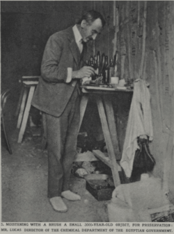 نُشر وصف لوكاس لعملية الحفظ في العديد من الصحف، ومنها مقال عام 1923 في صحيفة التايمز، فيه وصف صعوبات حفظ القطع المستخرجة من المقبرة: