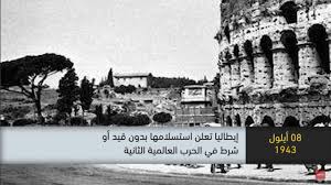 إيطاليا تعلن استسلامها بدون قيد أو شرط في الحرب العالمية الثانية.