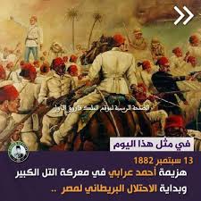 في مثل هذا اليوم 13 سبتمبر عام1882 هُزٍمَتْ القوات المصرية بقيادة الزعيم أحمد عرابي في معركة التل الكبير بالإسماعيلية على أيدي القوات البريطانية،وكانت سبباً في دخول الإنجليز بعدها للقاهرة واستقبلهم الخديوي، ووقع عرابي في الأسر وحكم عليه بالإعدام ثم خفف للنفي لينتهي الأمر بأن تقع مصر تحت الاحتلال الإنجليزي.