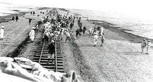 أثناء الحرب العالمية الأولى بدأ الإنجليز يفكرون في إقامة خط للسكك الحديدية يربط بين مصر وفلسطين لخدمة المجهود الحربي، وبالفعل بدأ العمل في بناء الخط من القنطرة شرق على الضفة الشرقية لقناة السويس وحتى غزة، واكتمل البناء عام 1918 وأدي اندلاع الحرب العالمية الأولى 1914 – 1919 وبعدها اندلاع الحرب العالمية الثانية 1940 – 1945 إلى ازدياد أهمية السكك الحديدية لدى البريطانيين لاستخدام تلك الخطوط في نقل العتاد والذخائر والجنود واعتمادها الرئيسي على تلك الخطوط في النقل”.