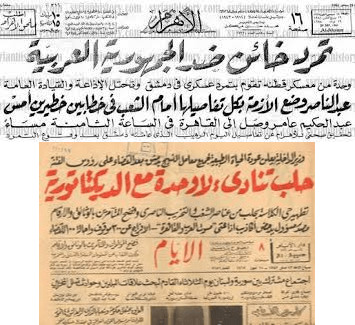 سوريا تعلن انفصالها عن الجمهورية العربية المتحدة إثر انقلاب عسكري قاده عبد الكريم النحلاوي.
