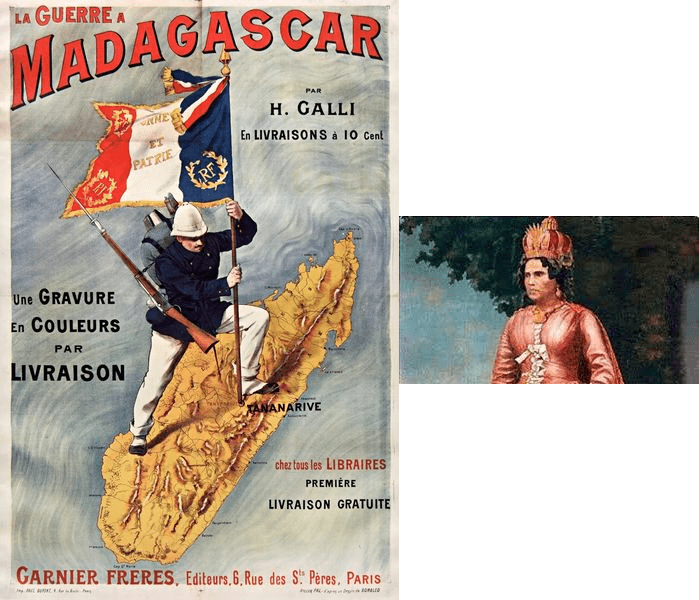 وتزامنا مع ذلك، اضطرت مدغشقر لتحمل سياسة قادة شعب ميرينا (Merina)، أهم مجموعة إثنية بمدغشقر، الذين مزّقتهم الخلافات وعجزوا في النهاية عن الحفاظ على استقلالها لتجد بذلك البلاد نفسها عاجزة عن صد التدخل العسكري الفرنسي عام 1895.