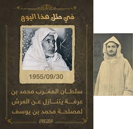 سلطان المغرب محمد بن عرفة يتنازل عن العرش لمصلحة محمد بن يوسف.