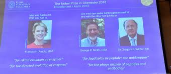 فوز غريغوري وينتر وجورج سميث وفرانسيس أرنولد بجائزة نوبل في الكيمياء لسنة 2018 وذلك لأبحاثهم في مجال البروتينات.
