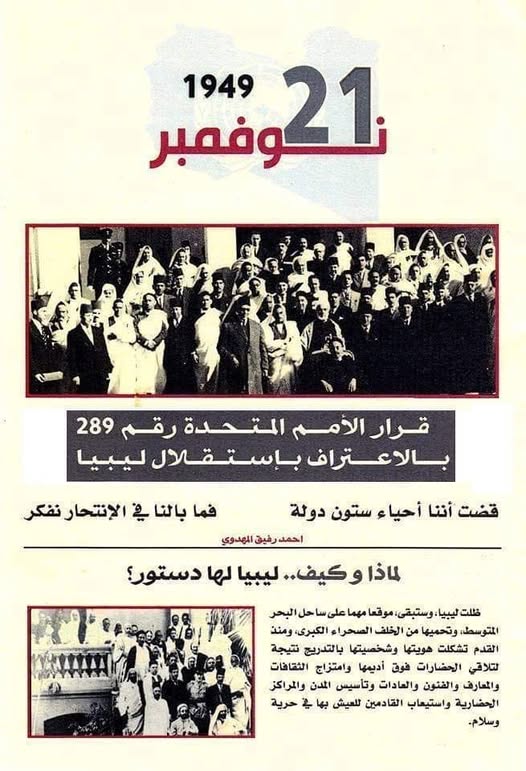 الجمعية العامة للأمم المتحدة توافق على استقلال ليبيا مع وحدة أراضيها.