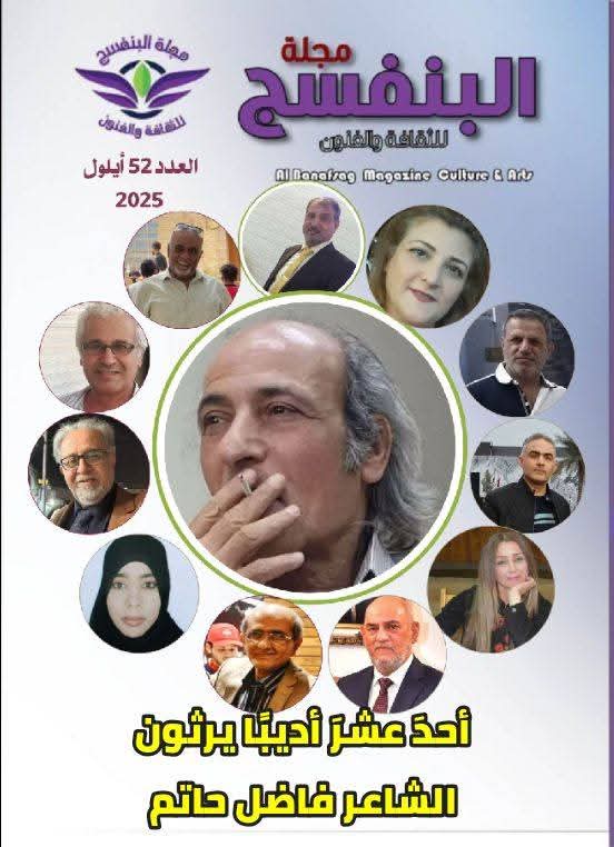 أصدرت مؤسسة البنفسج للثقافة والفنون العدد الثاني الخمسون «مجلة البنفسج للثقافة والفنون»، حيث تصدر الغلاف أحد عشر أدبيا يرثون الشاعر فاضل حاتم