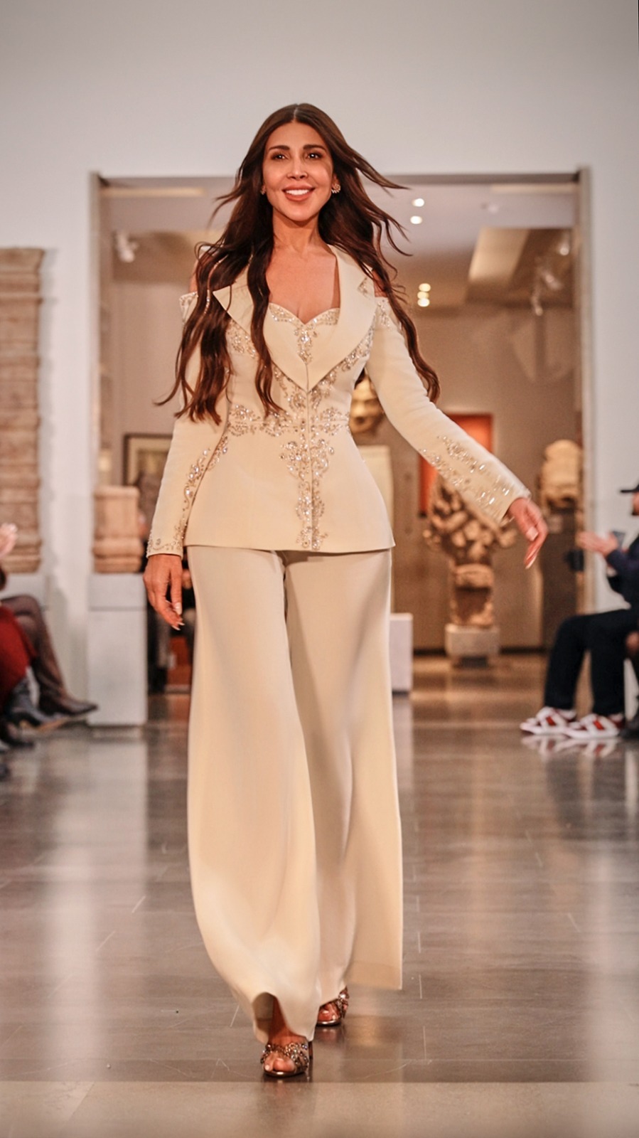 وقدّمت عجاج، التي تتخذ من دبي مقرًا لعلامتها، مجموعة هوت كوتور بعنوان “Language of Elegance”، اتسمت بخطوط معمارية أنيقة، وأقمشة فاخرة، وتطريز يدوي متقن، في توليفة توازن بين الأسلوب العصري واللمسة الفنية الراقية، كما عبّرت التصاميم عن صورة المرأة الواثقة والقوية بأسلوب بصري حديث حظي باهتمام الصحافة المتخصصة وتفاعل جمهور العروض.