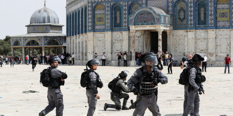 وقالت وكالة “معا” الفلسطينية، إن جنودا إسرائيليين اقتحموا صحن قبة الصخرة وشرعوا باطلاق قنابل الصوت والغاز على المصلين بعد انتهاء صلاة الجمعة وأثناء تجمع المصلين عند درجات قبة الصخرة والهتاف للمقاومة ولفلسطين.