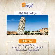 في مثل هذا اليوم 7 يناير من عام 1990 أغلقت إيطاليا البرج أمام الزوار بسبب اشتداد درجة ميله والخوف عليه من السقوط، برج بيزا المائل بالإيطالية هو برج جرس كاتدرائية مدينة بيزا الإيطالية، كان من المفترض ان يكون البرج عاموديا ولكنه بدأ بالميلان بعد البد ببنائه في أغسطس 1173م بفترة وجيزة.