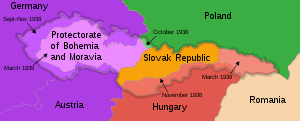 في 15 مارس 1939، أي بعد يوم واحد من إعلان الدولة السلوفاكية، انتقل الفيرماخت الألماني إلى بقية تشيكوسلوفاكيا ومن قلعة براغ، أعلن هتلر محمية بوهيميا ومورافيا بعد المفاوضات مع إميل هاشا، الذي بقي رئيسًا تقنيًا لـلدولة، بلقب رئيس الدولة. ومع ذلك، فقد أصبح عاجزًا؛ السلطة الحقيقية كانت مخولة إلى حامي الرايخ، الذي شغل منصب الممثل الشخصي لهتلر. انتهى الاحتلال باستسلام ألمانيا بعد الحرب العالمية الثانية.!!