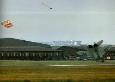 مقاتلة ميغ-29 تابعة للقوات الجوية الروسية تتعرض لضربة طير في معرض باريس الجوي وقد استطاع الطيار “أناتولي كفوتشر” من الحول دون سقوط المقاتلة وسط المشاهدين وعدم جرح أحدهم وأيضاً قام بقذف نفسه على ارتفاع 400 قدم وأنقذ نفسه.!!