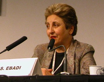 حصَلت عَلى جائزة نوبل للسلام في 10 أكتوبر 2003؛ لجُهودها في مجالِ الديموقراطية وحقُوق الإنسانِ، لا سيّما الأطفال والنساء واللاجئين، لتصبحَ أوّل إيرانيةٍ تحصُل على الجائزة.