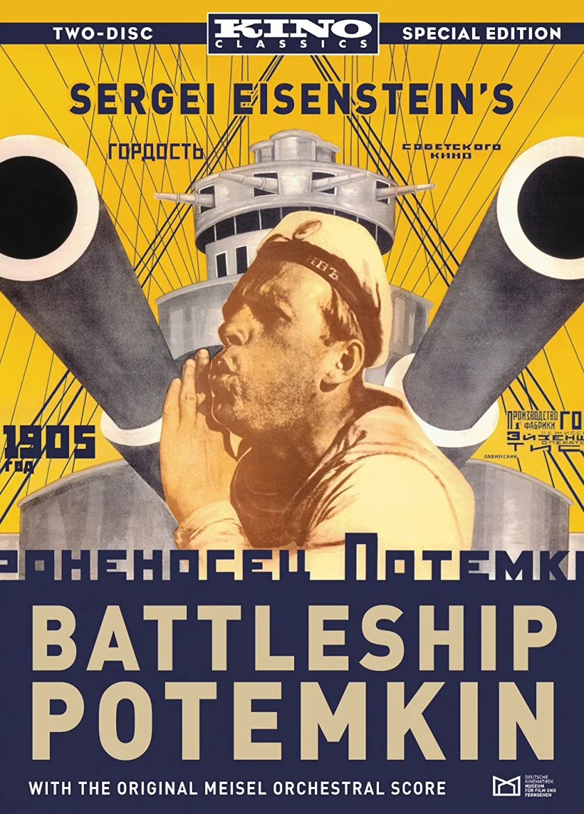فيلم المخرج والمنظّر السوفييتي سيرغي أيزنشتاين «المدرعة بوتمكين»، وهو فيلم قصير نسبياً (٧٥ دقيقة) إنّما فيه مشاهد تُدرّس وصارت تأسيسية لكيفية أخذ اللقطات وعلاقة اللقطة بموضوعها، وتحديداً المونتاح الذي يقطّع ويوصّل بين اللقطات.