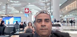 دخل وهو يرتدي معطفا شتويا طويلا للغاية – وهو قصير القامة – ممزقا من عديد الأماكن، حافي القدمين وكثيف الشعر الأبيض والأسود وكذلك اللحية المتدلية إلى صدره، متسخ الجسد وقذر الروائح، شاحب الوجه ونحيل الجسد، يتلعثم في الكلام – وقد خلته من عطشه نتيجة هذا الطقس وقلة إمكانياته ليتزود بما يحتاجه من مياه معدنية ككل أفراد هذا الشعب بعد أن تلوثت مياه الدولة ولم تعد صالحة للشرب -، يبسط يده نحو الجميع سائلا العون وإعطائه قليلا من المال وهو يرينا أظافر يديه الطويلة والسوداء بالأوساخ من الداخل، ولم يعطه أحد من الحضور شيئا رغم توسله و إلحاحه.