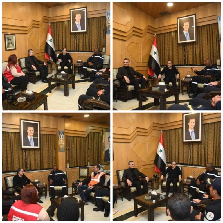 إلتقى محافظ حلب السيد حسين دياب فريق الحماية المدنية التونسي الذي شارك في عمليات الإنقاذ في حلب برئاسة العميد شكري الزويدي . وأعرب المحافظ عن شكره وتقديره للدور المتميز للفريق التونسي الذي كانت له مشاركة فاعلة في عمليات الإنقاذ ،…